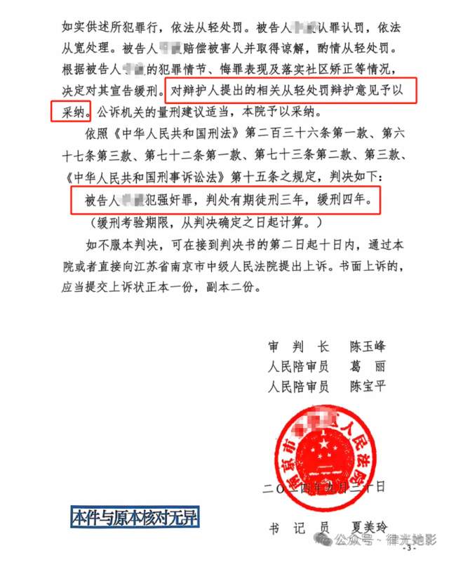 通过上图数据能够清晰认识到强奸罪在实务中被判缓刑的概率是极低的。江苏天倪律师事务所徐凤律师分享代理的两起强奸罪缓刑判例,尤其均属酒后强奸,具有一定共性,希望能给读者些许启发。