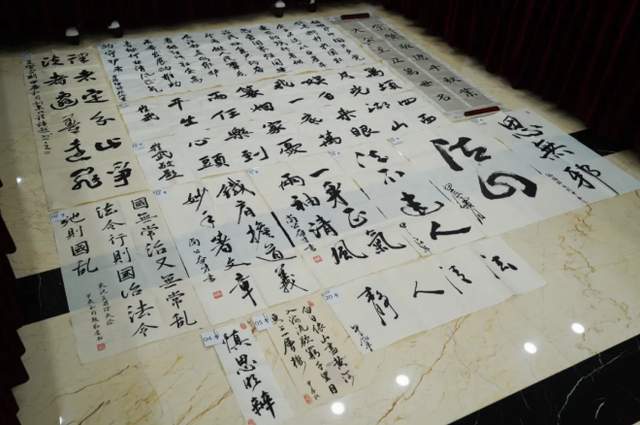 书法组评审专家于洪军老师指出,一些书法作品以“法治精神”为核心,通过遒劲笔锋与章法布局,将法律条文与传统书法艺术巧妙融合。部分作品打破传统书写形式,其“以古喻今”的设计极具创意,既呼应法治文化的历史传承,又赋予现代法治新的艺术表达。